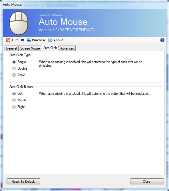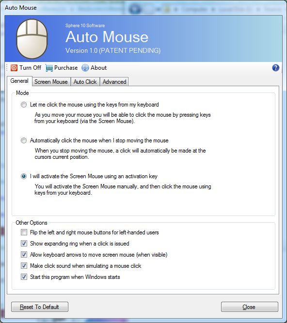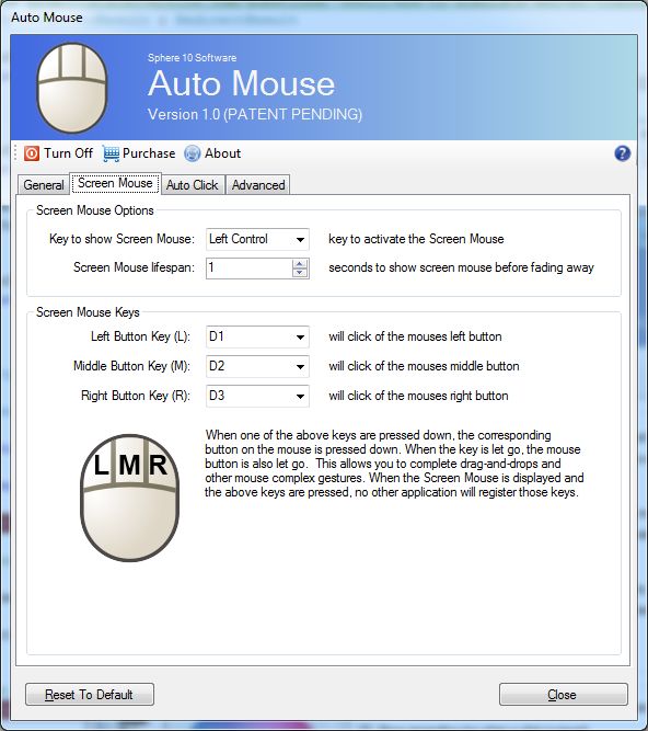 Auto Mouse unique and patent pending design allows you to click, double click and drag-and-drop the mouse using only your keyboard with ease. In fact, some graphic artists report it easier to draw using the real mouse to move the cursor and the Screen Mouse to click the mouse as it distributes the physical work over both hands